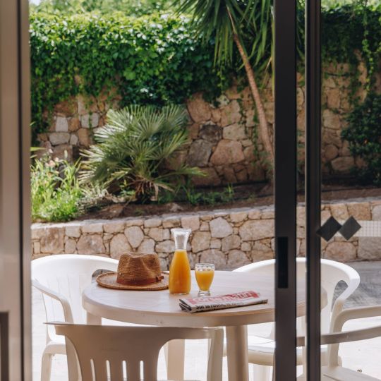 You will appreciate modern amenities such as air conditioning, telephone, and television. Each apartment features a private balcony or terrace with garden furniture, perfect for relaxing. Located on the ground or first floor, these apartments are designed for your comfort.